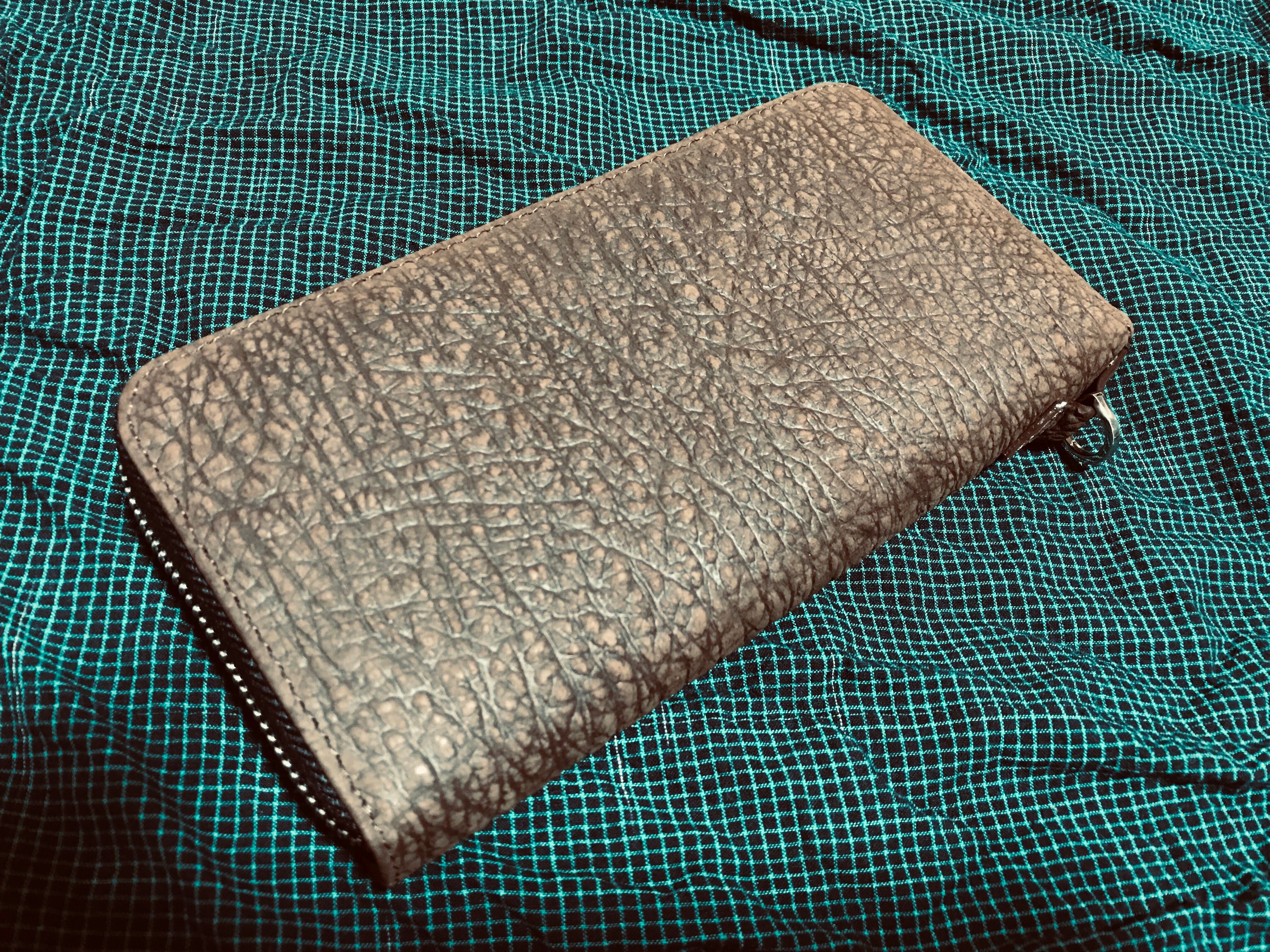 素材:エレファント革(外装、ファスナー持ち手)、牛革(内装)