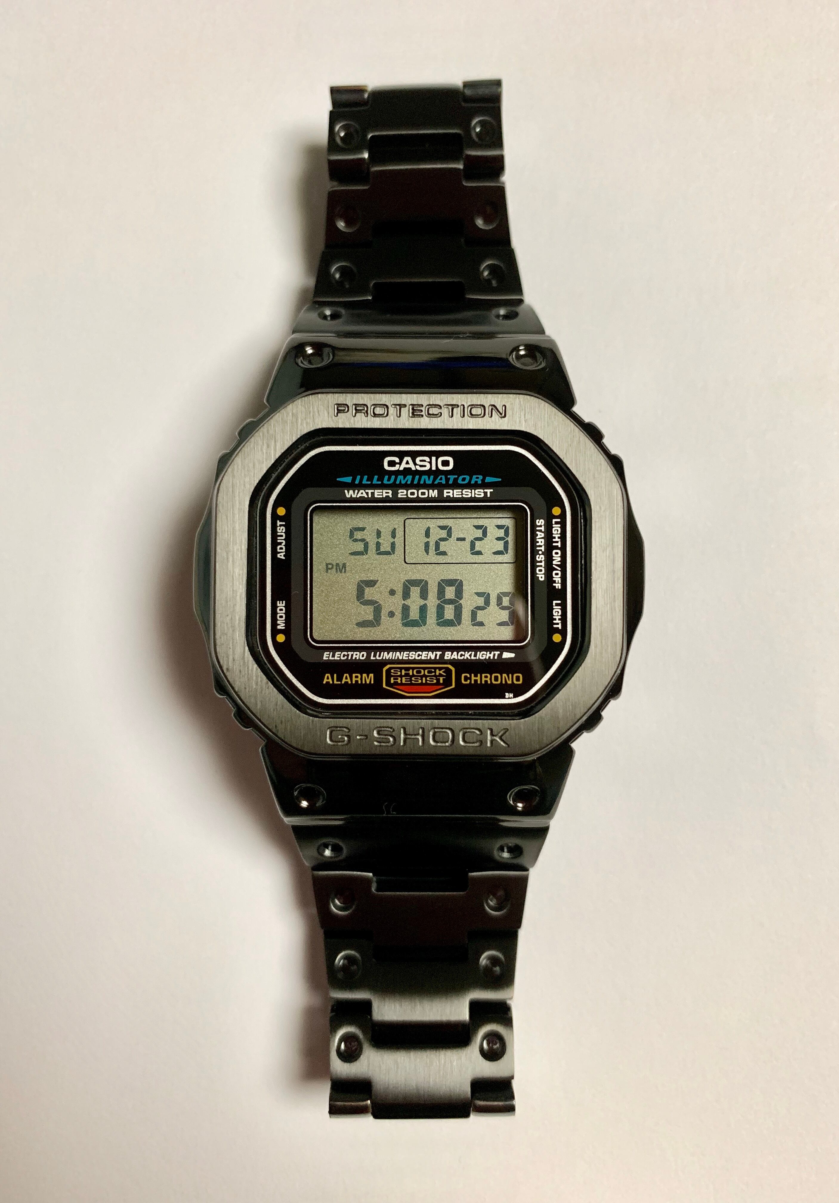 新品のDW-5600-1に、同じく新品のブラックのメタルのベゼルとバンドを付け替えています。