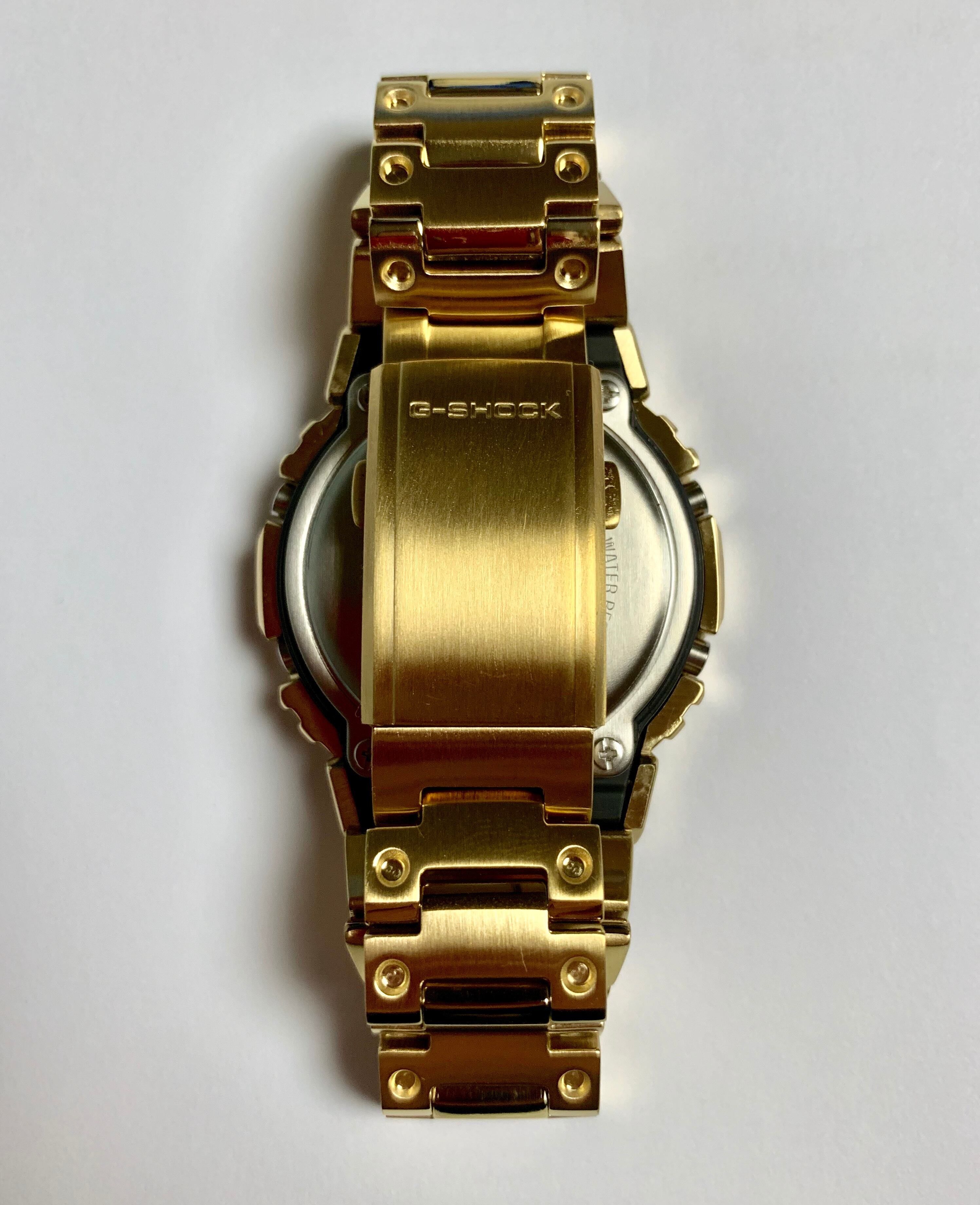 新品のDW-5600-1に、同じく新品のゴールドのメタルのベゼルとバンドを付け替えています。