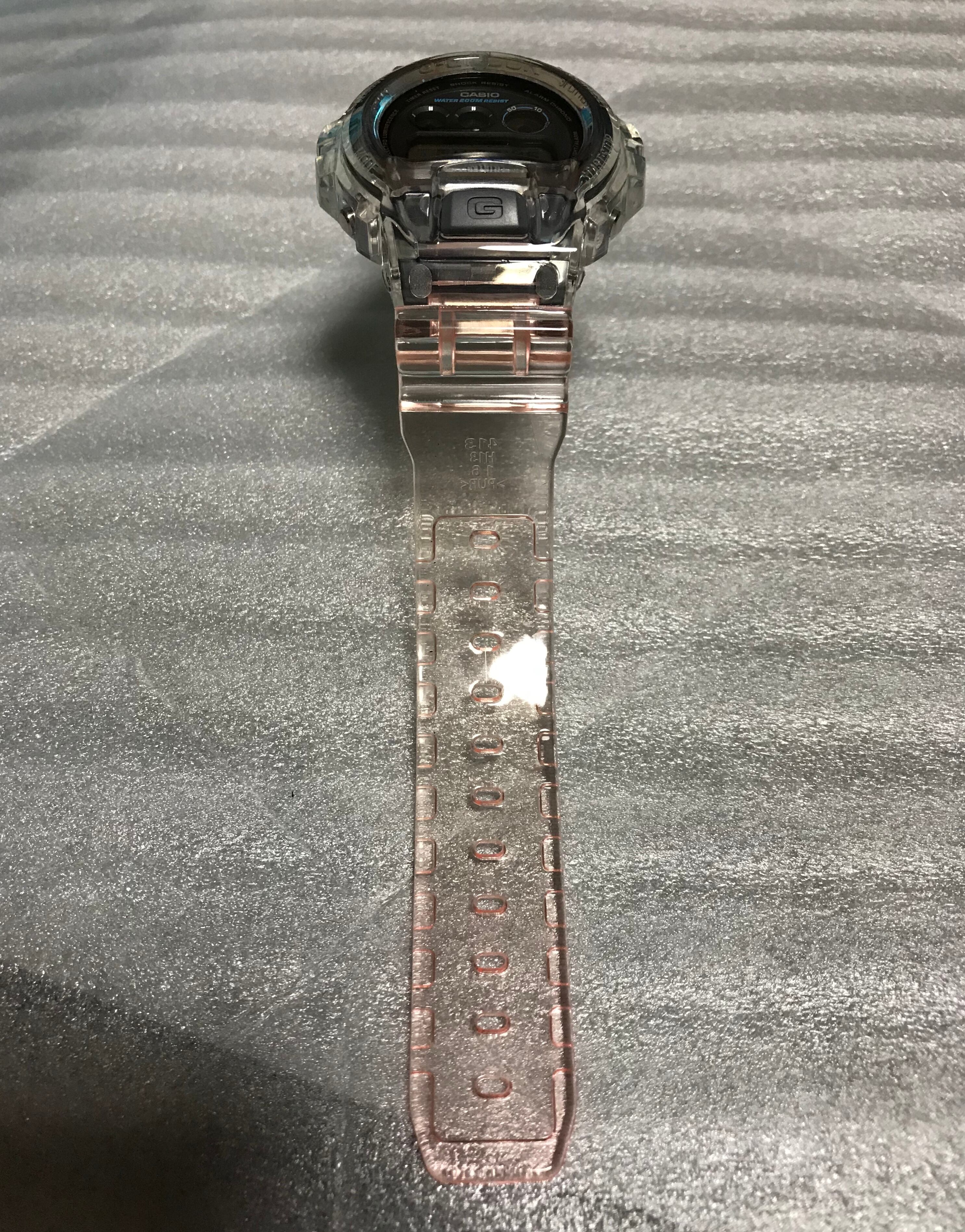 新品で購入したDW-6900-1に、同じく新品のクリアのベゼルとバンドを付け替えています。