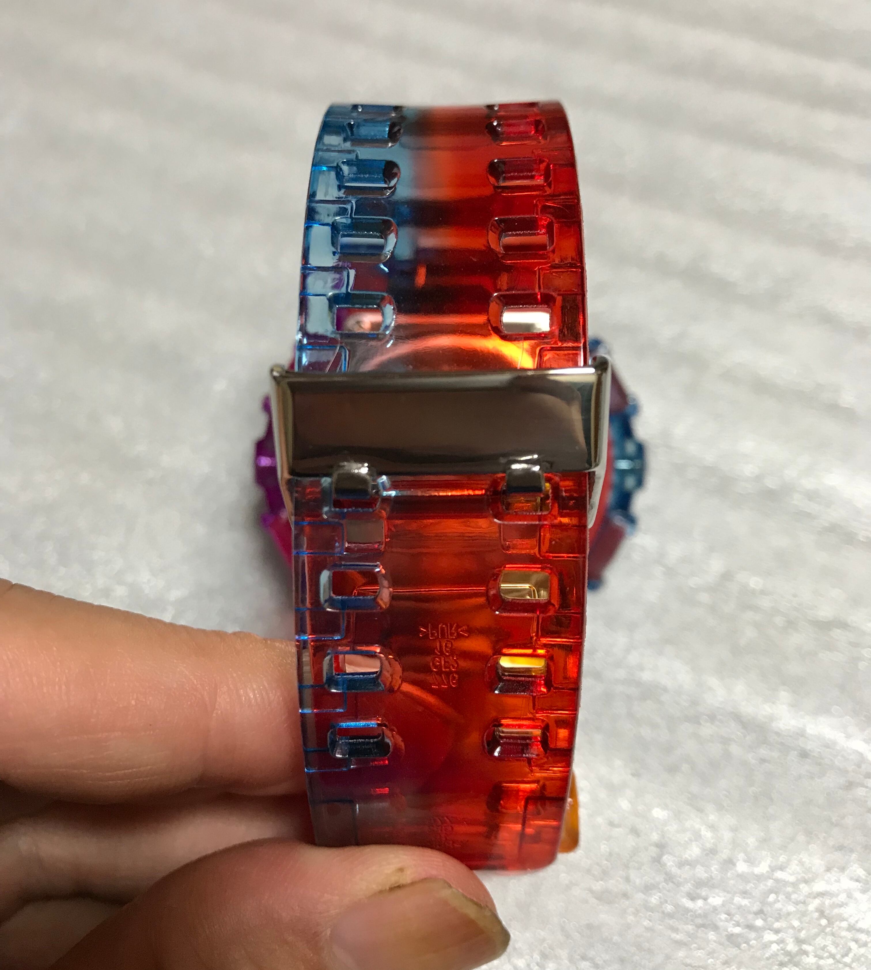 新品で購入したGA-100-1A4に、同じく新品のクリアのベゼルとバンドを付け替えています。