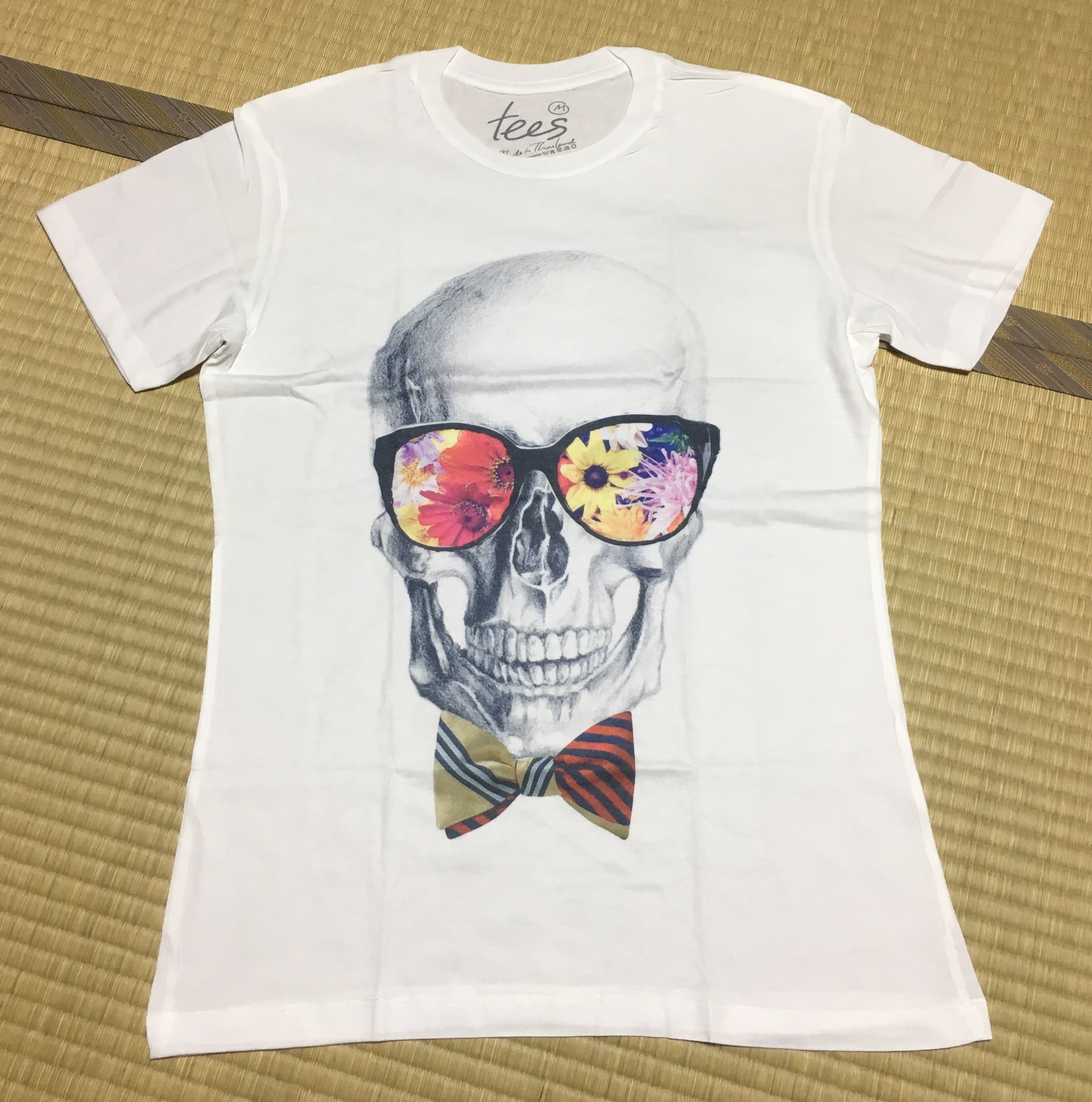 tees Tシャツ Flower フラワー 花 Skull ドクロ 蝶ネクタイ 眼鏡 メガネ Lサイズ